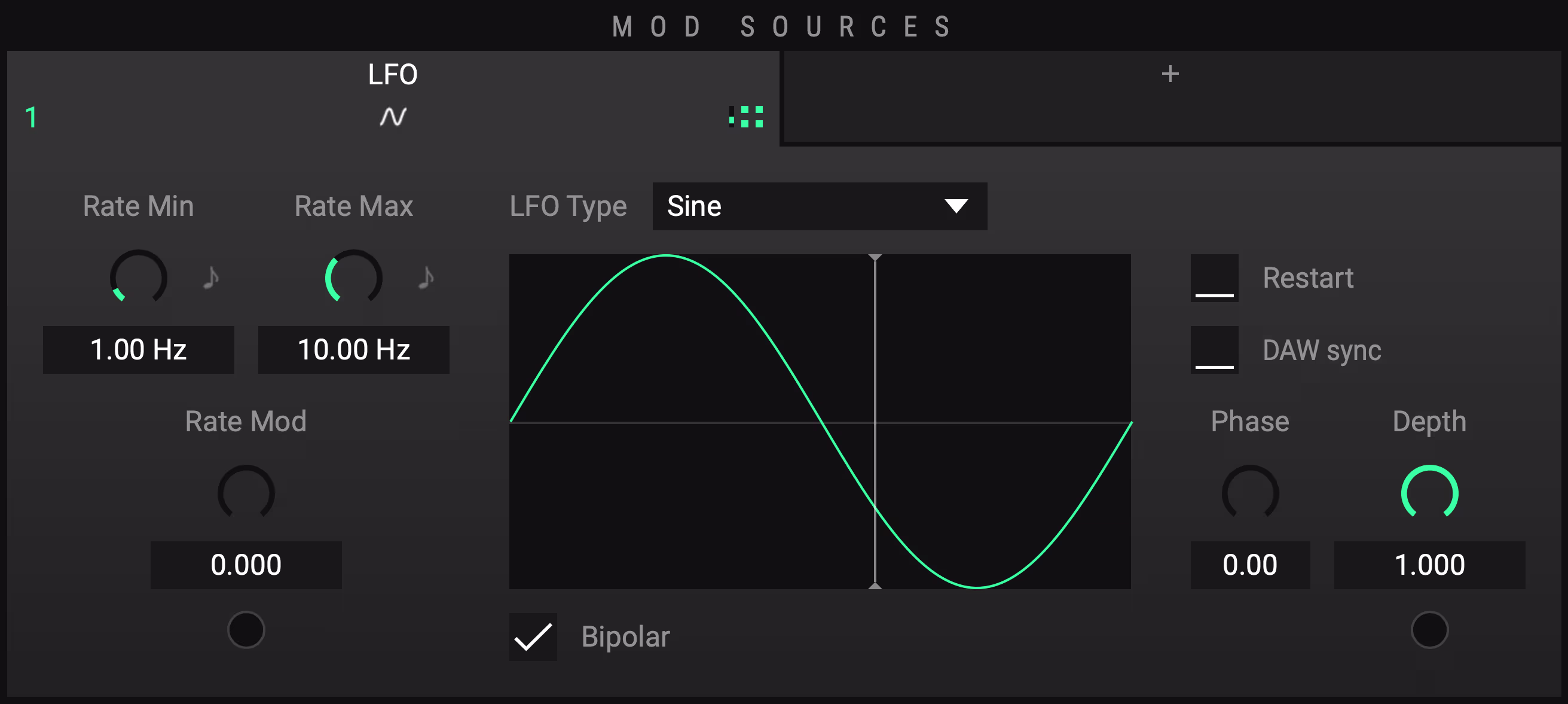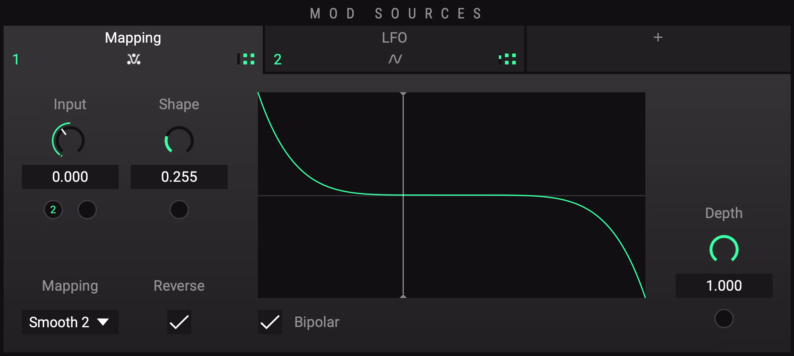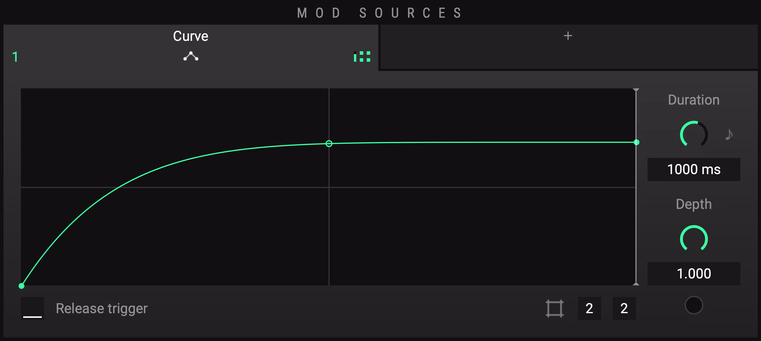 - Now drag the little green 1 downwards to set the modulation amount. If you do not want the modulation amount to exceed the possible maximum as determined by the knob position, just press and hold shift whilst dragging.