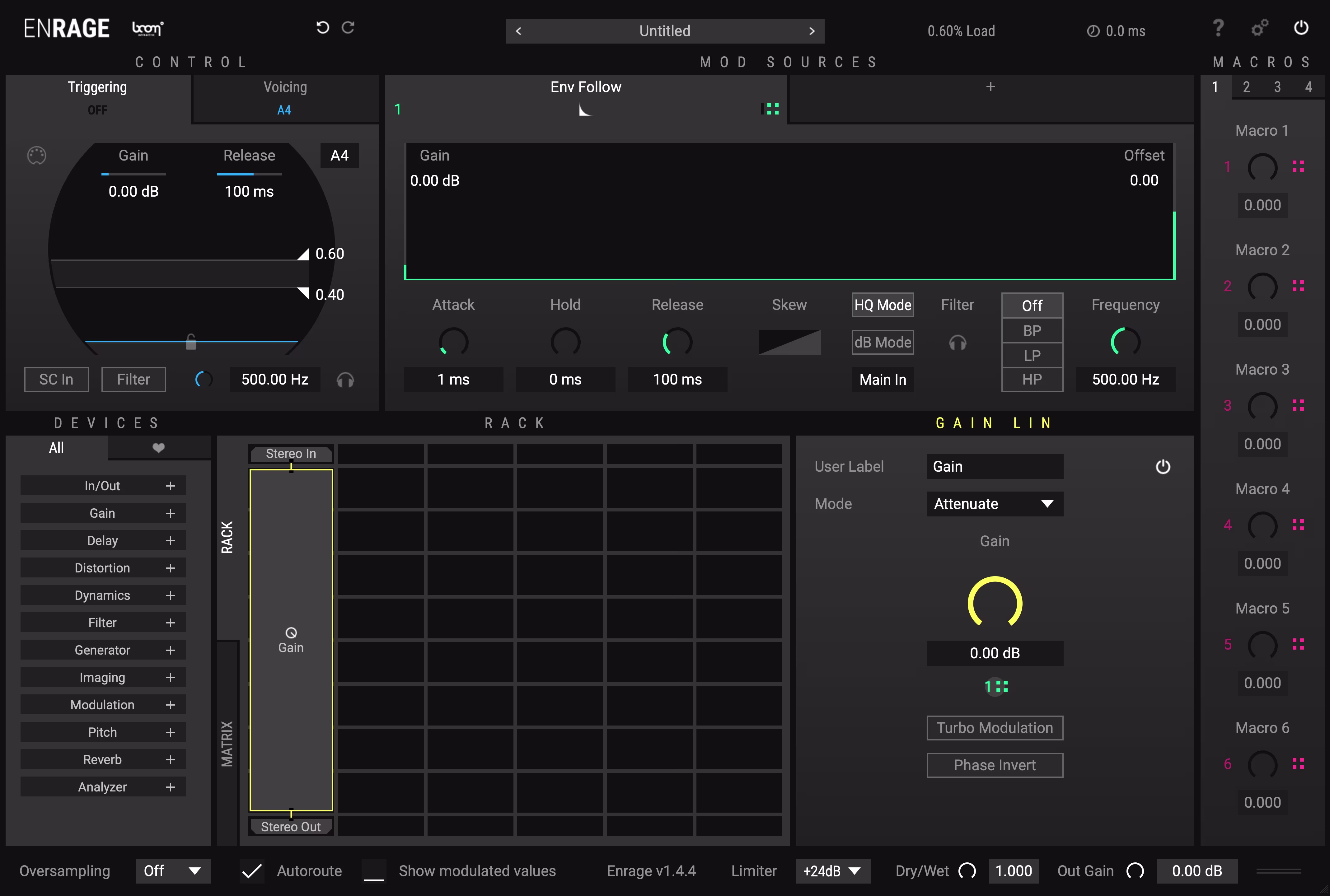 ENRAGE is a modular multi effect plug-in. It allows to freely combine various kinds of audio processors in a 6 by 10 grid. Combined with precise modulators, flexible routing capabilities and high-quality processing devices you can get creative designing highly innovative effects or mastering grade chains.
