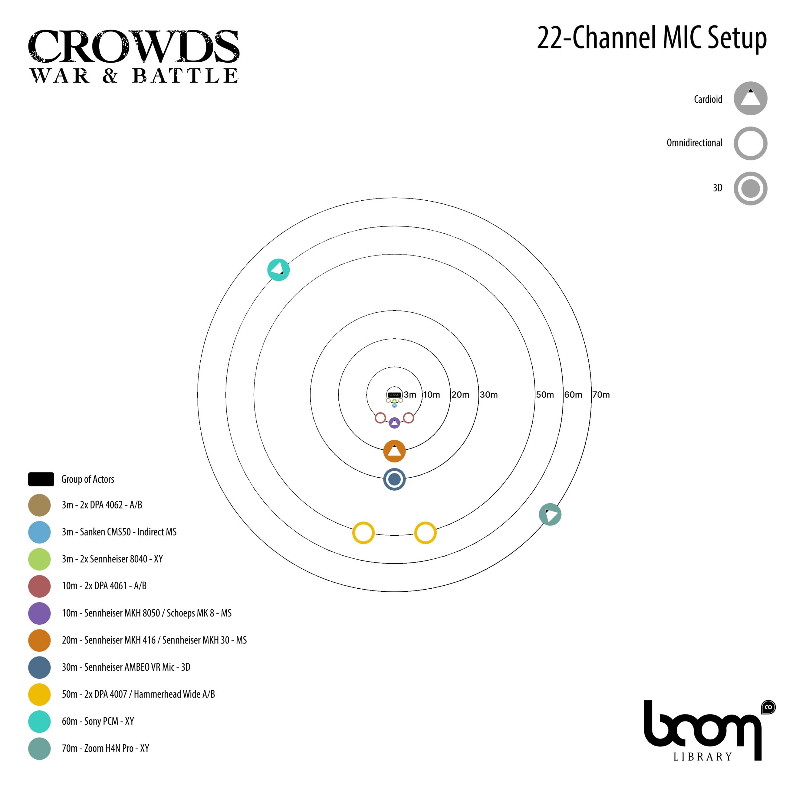 The sound of battle isn’t just weapons clashing — it’s the voices, cries, and groans that bring the chaos to life. CROWDS – WAR & BATTLE delivers professional crowd recordings featuring both male and female actors, capturing the raw emotion and energy of combat. From rallying cries over visceral struggle to crowd cheering sound effects, this library immerses your audience in the human side of battle crowd noise.
