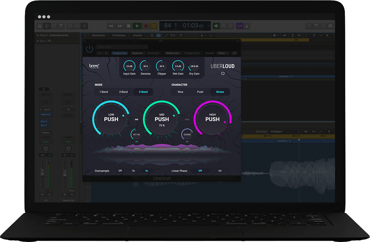 With version 1.2, we’ve again listened to your feedback and added some true, hands-on controls to properly shape your sound to the maximum. Still functioning under the basic knob principle, UBERLOUD includes multiband modes with optional linear phase filters and automatable crossover frequencies, oversampling capabilities, and the ability to link those knobs together for ultimate customization capabilities. It’s also got full Native Apple Silicon support.